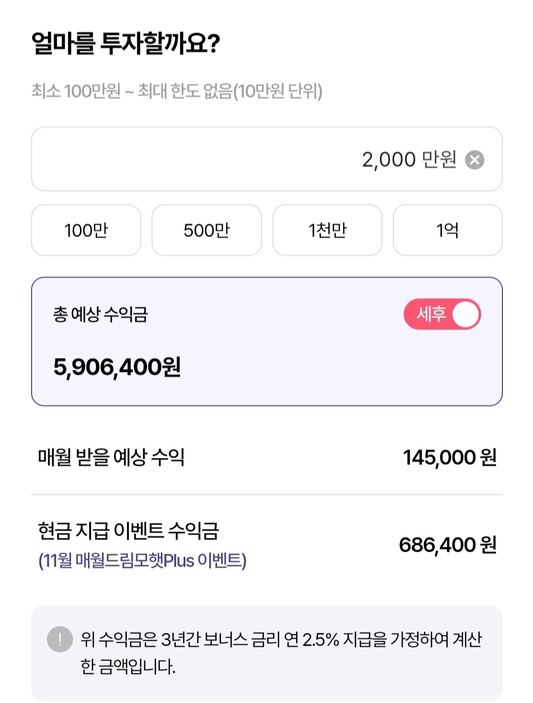 ③ 투자 금액 설정 및 입금